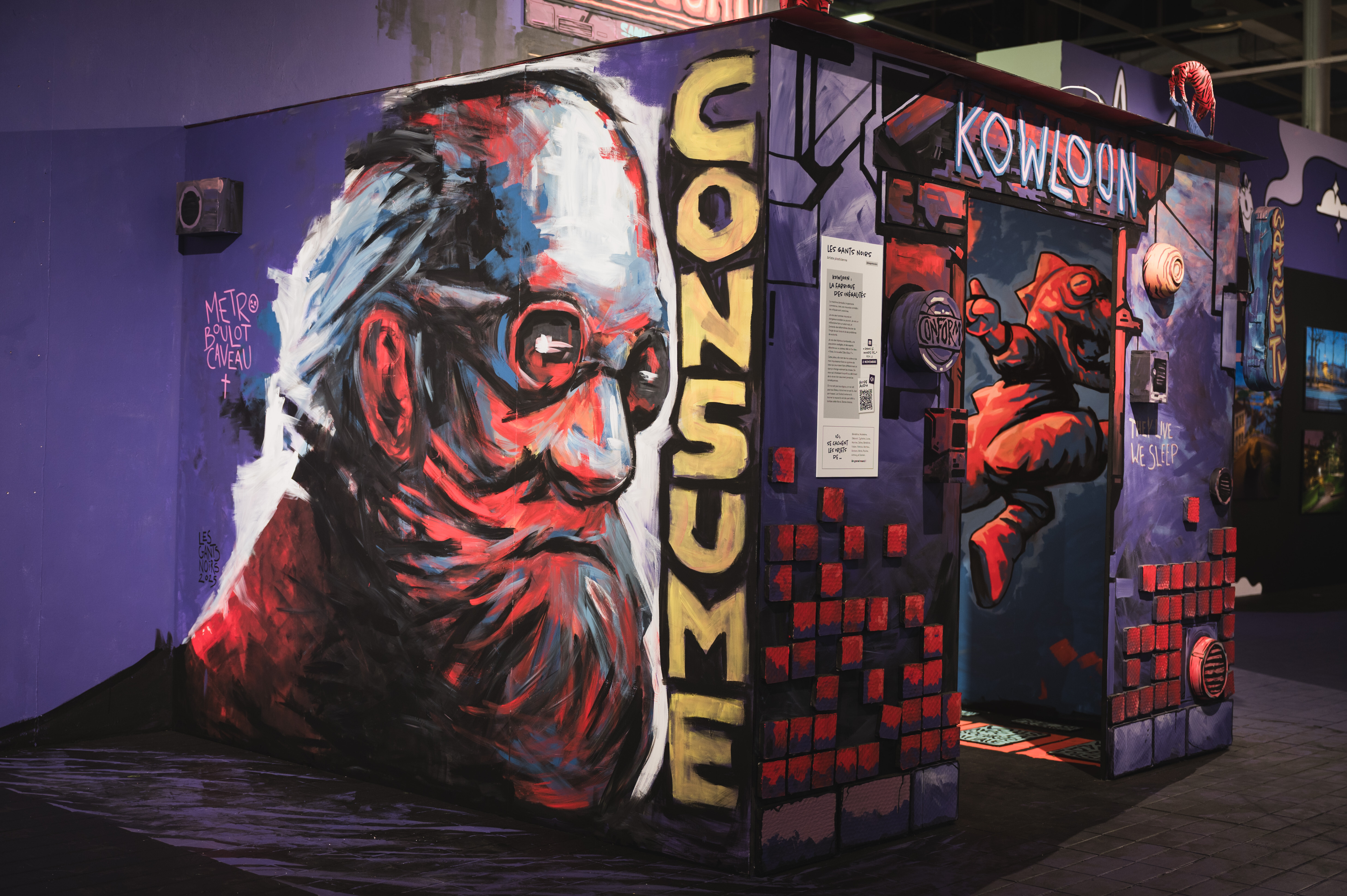 Après le duo Toki, nous poursuivons cette dynamique en réunissant deux univers complémentaires. Leurs scénographies remarquées en 2025 ont naturellement orienté ce choix. Le parcours s’ouvre désormais avec une salle d’embarquement, première immersion signée les Têtes Dures, qui structure l’ensemble du cheminement. On passe d’une juxtaposition d’œuvres à une scénographie globale, plus physique et lisible, sans perdre la diversité artistique.