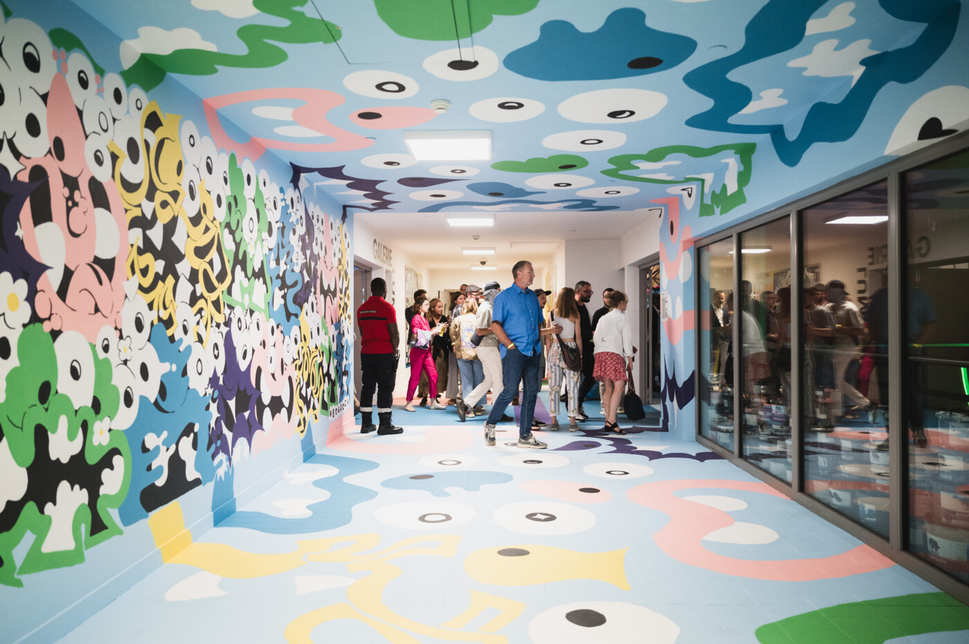 Depuis le mois de juillet, nous avons totalement investi les 1 500 m² du 4e niveau du Centre d’Échanges de Lyon Perrache, avec les 40 artistes résidents de cette édition, afin de le transformer en une exposition ultra-colorée. D’où la thématique de l’exposition cette année : la Métamorphose des Mondes !