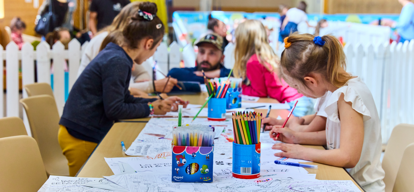 • Des ateliers animés par des auteurs et illustrateurs jeunesse (écriture, BD, dessin, jeu, peinture, quiz, manga, et bien d’autres !)