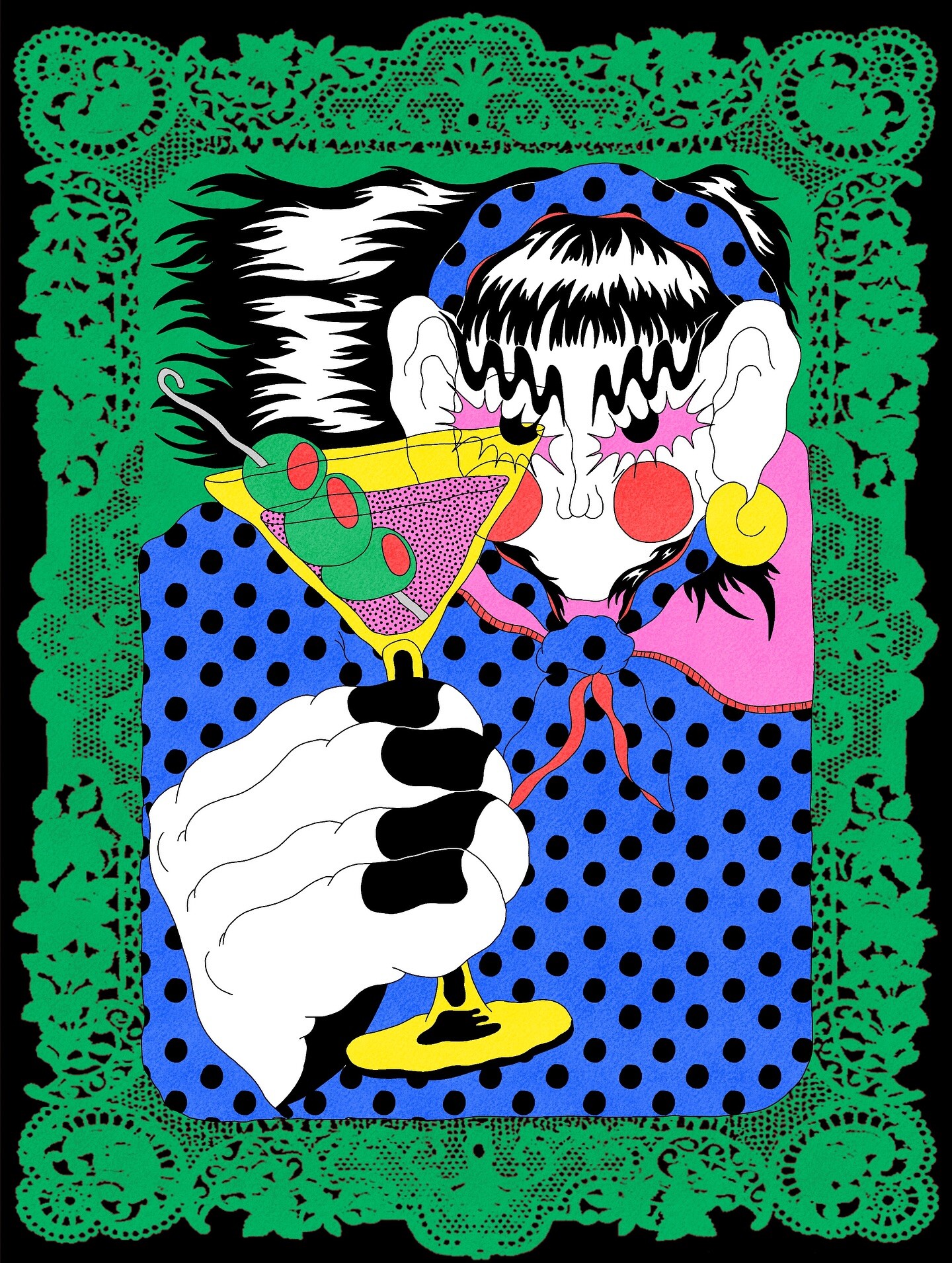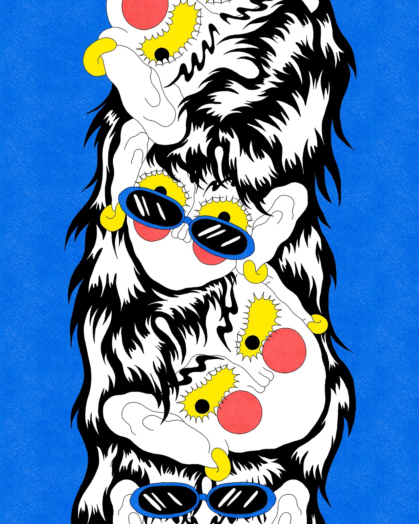 Son travail s’empare du quotidien pour mieux le déplacer. Une scène banale devient le point de départ d’une narration absurde, presque surréaliste, où le graphisme dialogue librement avec l’illustration. Formée au design graphique, elle fait le choix, dès la sortie de ses études, de se lancer directement en freelance. Un pari d’indépendance assumé, qui lui permet de construire un parcours à son image, fait de collaborations choisies (festivals, musique, édition) et d’une grande liberté créative.
