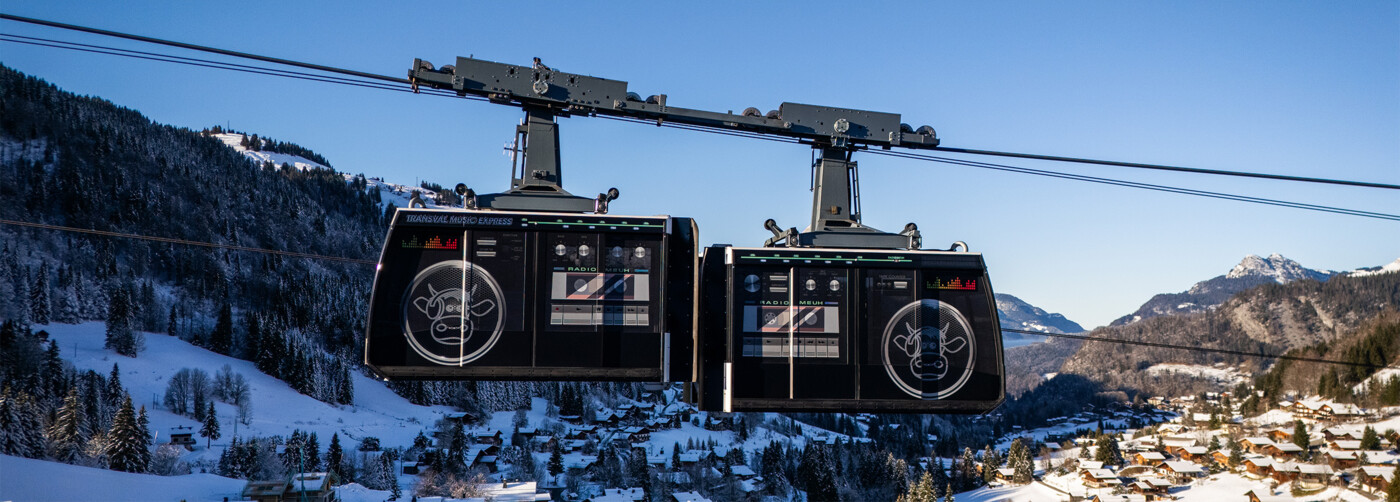 Plus loin, changement de rythme, changement d’ambiance. L’unique téléphérique du domaine s’est mué en capsule sonore : le Transval Music Express. À bord, c’est Radio Meuh qui mène la danse. Décor léché, lumière douce, playlist signée Phil Thévenet… On traverse la montagne dans une atmosphère qui oscille entre voyage immobile et parenthèse groovy. Une respiration à part entière.
