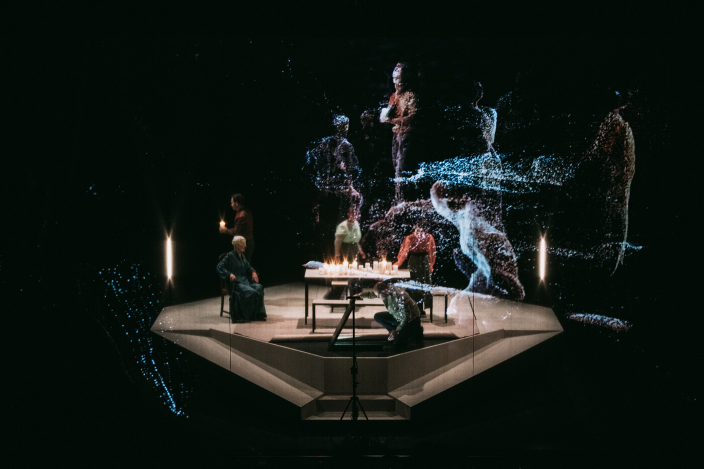 Grâce à un dispositif technologique innovant — audio binaural, captation volumétrique, réalités augmentées — la pièce brouille la frontière entre le réel et l’imaginaire. Le spectateur devient acteur malgré lui, happé dans une partition de sons, de lumières et d’illusions. Porté par la scénographie d’Elsa Belenguier, la création sonore de Grégoire Durrand et les lumières de Pierre Langlois, La Fin du présent déploie un langage à la fois poétique et sensoriel, où la technologie s’efface pour mieux révéler l’être humain.