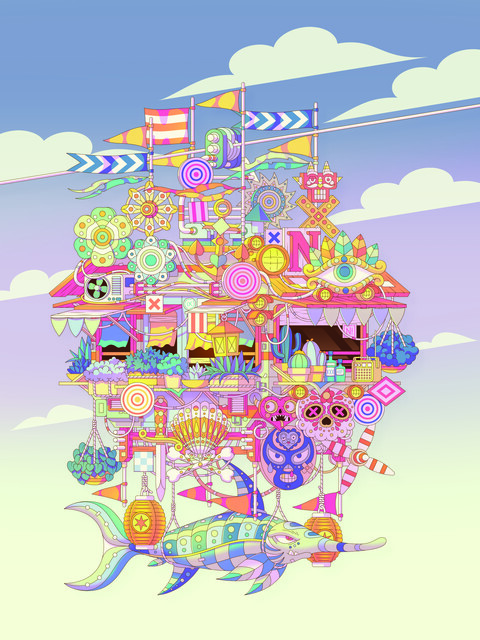 Son univers est dense, hybride, nourri par trois grandes influences : les subcultures urbaines (graffiti, tattoo, street art), les symboles et imaginaires venus des folklores du monde, et une nature organique, presque en mouvement. À ce chaos visuel, il oppose une structure ultra précise, inspirée par l’architecture : lignes tendues, compositions équilibrées, gestion millimétrée des volumes. Chaque image fonctionne comme un écosystème. On peut la lire d’un coup d’œil, puis s’y perdre pour en capter les détails cachés. Derrière le style, il y a une vraie méthode : rien n’est laissé au hasard, tout est construit pour tenir visuellement et raconter quelque chose.