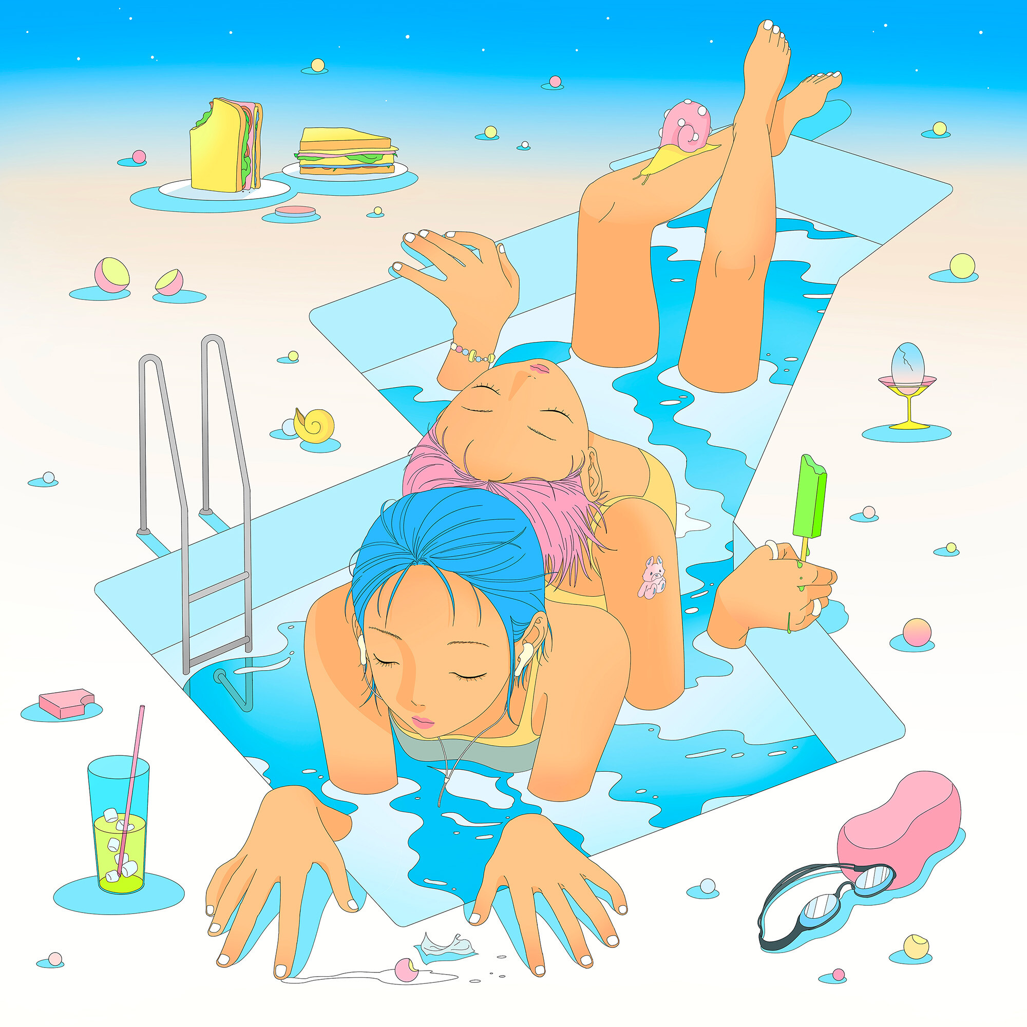 Ce sont des univers qui m’ont fascinée très jeune, donc ils ont naturellement façonné mon goût et ma manière de percevoir la beauté. Des espaces à la fois familiers et étranges, des personnages aux qualités inattendues, des couleurs qui évoquent la nostalgie… Ce sont des éléments qui continuent de me captiver. Aujourd’hui, avec l’explosion des médias et des plateformes, on est constamment exposés à de nouvelles esthétiques, mais je pense que les influences plus anciennes restent comme une base. Tout est interconnecté, recyclé, réinventé — et mon travail s’inscrit dans cette circulation permanente.