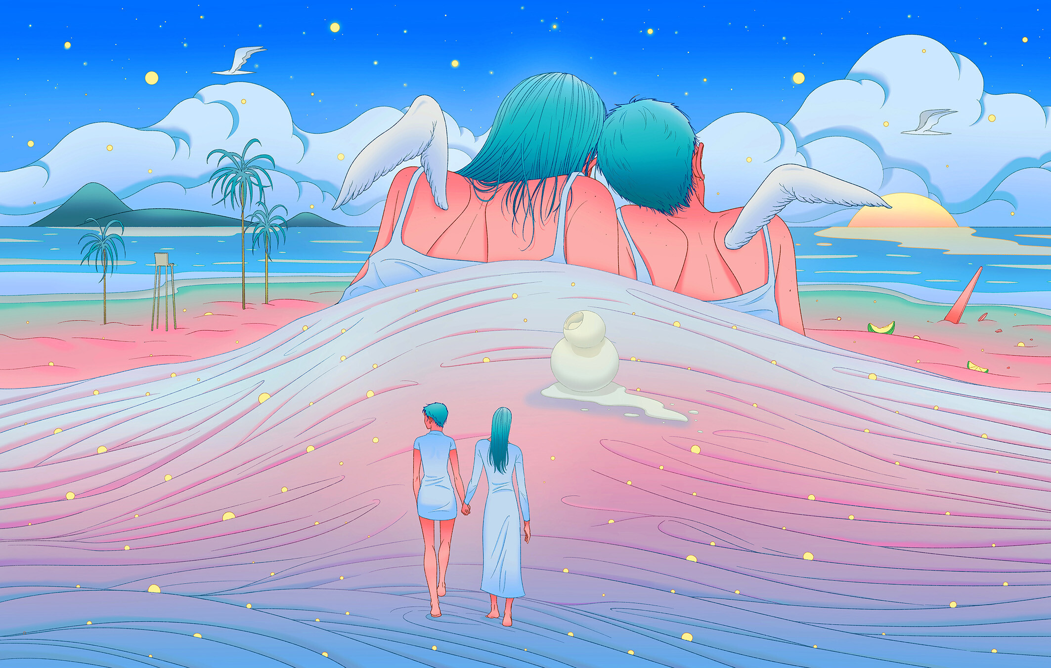 On retrouve souvent des chats, des fantômes ou des sirènes dans tes illustrations. Que représentent ces personnages récurrents pour toi ?